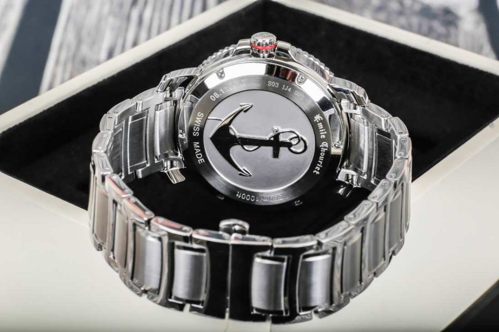 Thiết kế của Emile Chouriet Challange Deep 08.1169G6AW98.6 vô cùng thực tế với các cọc giờ và kim đơn giản và gọn gàng. Các điểm giờ 3, 6, 9, 12 được làm nổi bật, đặc biệt vị trí 6 giờ còn được trang trí như một chiếc mỏ neo khiến bố cục mặt số không hề đơn điệu. Mỗi cọc giờ và kim đồng hồ còn được phủ dạ quang siêu sáng để người dùng có thể xem giờ trong điều kiện thiếu sáng. Trang bị bộ máy automatic mạnh mẽ với trữ lượng dây cót 42 giờ, tần số 28800 vph.