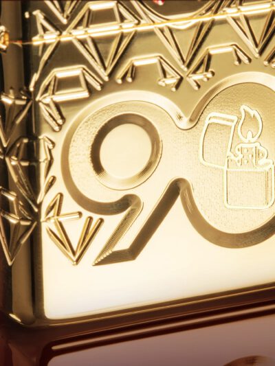Quy trình chạm khắc sâu (Lustre Etched ) đổ bóng bên trong số “0” của số “90” là hình ảnh mô hình chiếc bật lửa Zippo. Đây cũng là lần đầu tiên được trang trí bên trong một thiết kế chạm khắc sâu.