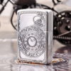 Trên thiết kế bật lửa Armor ® này, lớp hoàn thiện Black Ice ® cực kỳ nổi tiếng được trang trí bằng ngọn lửa Zippo có vẻ như hoàn toàn 3-D, nhưng thực tế đã được tạo ra thông qua thao tác nghệ thuật thông minh của quy trình khắc sâu của Zippo.