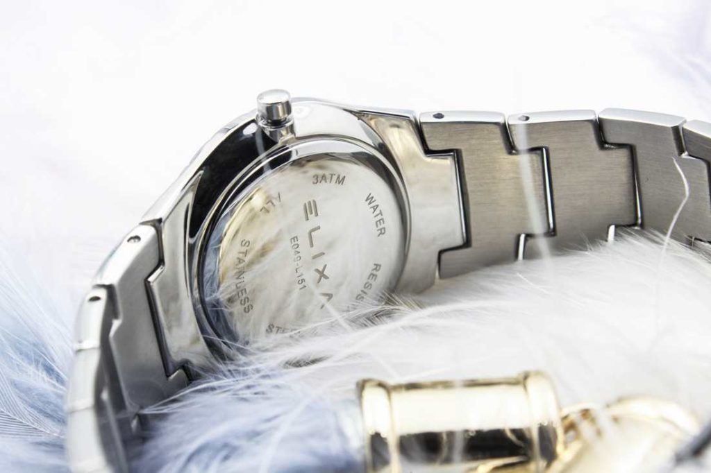 Không thiết kế quai và dây đeo đồng hồ tách biệt như thông thường. Elixa đã thiết kế nối liền quai và dây đeo đồng hồ thành một khối vô cùng chắc chắn. Đồng thời lại tạo nên đường cong mềm mại vô cùng nữ tính.