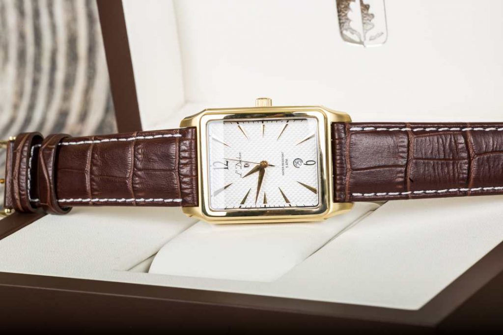 L’Duchen D 571.22.23 có dây đeo là dây da bê xịn màu nâu đậm, xu hướng cổ điển với đường chỉ khâu viền chắc chắn và thời trang. Phần vỏ bóng bẩy, siêu bền do được chế tác từ thép cao cấp, mạ vàng công nghệ PVD khiến việc bong tróc hay mất là khó xảy ra ngay cả khi đeo đồng hồ nhiều năm liền. Có một điểm mà người viết rất thích ở L’Duchen D 571.22.23 đó là dây da rất mềm, rất thoải mái ngay từ khi đập hộp chứ không cần đeo một thời gian như phần lớn các đồng hồ dây da khác.
