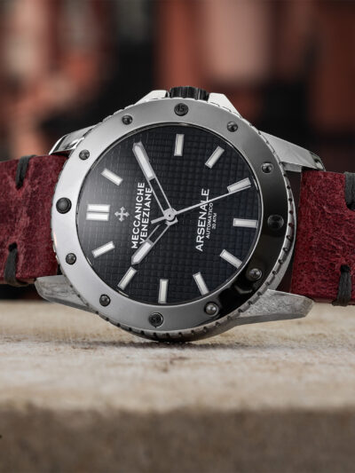Đồng hồ Arsenale được lấy cảm hứng từ tên gọi và thiết kế của xưởng đóng tàu của Cộng hòa Serenissima, được biết đến trên toàn thế giới với việc sản xuất tàu thuyền và tàu buôn. Thép không gỉ 316L gợi nhớ quá trình xử lý kim loại được sử dụng trong việc chế tạo tàu ngầm và vũ khí hải quân trong thế kỷ XX