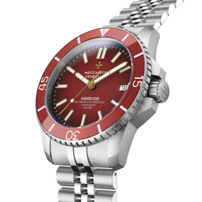 Dây kim loại Jubilee là một trong những loại dây tay được đánh giá cao nhất trong thế giới sản xuất đồng hồ, cho thấy hoàn hảo hình dạng và độ hoàn thiện của vỏ Nereide. Chúng tôi đã thực hiện một số thử nghiệm để có được một sản phẩm thoải mái, chất lượng cao với lớp hoàn thiện được chải hai lần và đánh bóng. Đảm bảo vừa vặn hoàn hảo trên cổ tay. Trên thực tế, dây đồng hồ này được trang bị khóa bướm mang lại cảm giác vừa vặn cực kỳ thoải mái.
