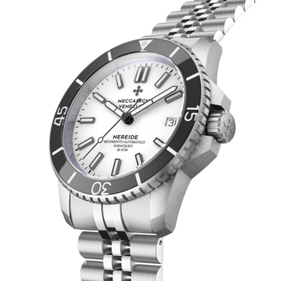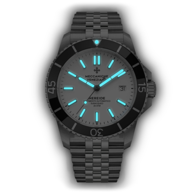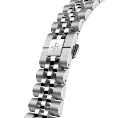 Dây kim loại Jubilee là một trong những loại dây tay được đánh giá cao nhất trong thế giới sản xuất đồng hồ, cho thấy hoàn hảo hình dạng và độ hoàn thiện của vỏ Nereide. Chúng tôi đã thực hiện một số thử nghiệm để có được một sản phẩm thoải mái, chất lượng cao với lớp hoàn thiện được chải hai lần và đánh bóng. Đảm bảo vừa vặn hoàn hảo trên cổ tay. Trên thực tế, dây đồng hồ này được trang bị khóa bướm mang lại cảm giác vừa vặn cực kỳ thoải mái.