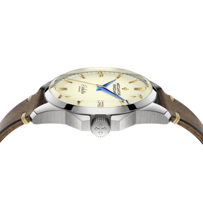 Sự lựa chọn phong cách cẩn thận này cung cấp một cái nhìn hiện đại hơn cho một thiết kế nhằm mục đích truyền tải truyền thống và sự đổi mới đồng thời. Lớp hoàn thiện satin sâu có được thông qua việc sử dụng các bàn chải đặc biệt của các thợ thủ công lành nghề, những người hoàn thiện từng bề mặt riêng biệt thông qua quy trình hoàn toàn thủ công. Một số bước thủ công được yêu cầu để đạt được kết quả đồng nhất vượt qua quy trình kiểm soát chất lượng nội bộ.