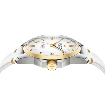 Sự lựa chọn phong cách cẩn thận này cung cấp một cái nhìn hiện đại hơn cho một thiết kế nhằm mục đích truyền tải truyền thống và sự đổi mới đồng thời. Lớp hoàn thiện satin sâu có được thông qua việc sử dụng các bàn chải đặc biệt của các thợ thủ công lành nghề, những người hoàn thiện từng bề mặt riêng biệt thông qua quy trình hoàn toàn thủ công. Một số bước thủ công được yêu cầu để đạt được kết quả đồng nhất vượt qua quy trình kiểm soát chất lượng nội bộ.