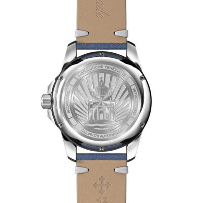 Đồng hồ Redentore được lấy cảm hứng từ kiệt tác của kiến trúc sư nổi tiếng người Venice Andrea Palladio (1508-1580), cha đẻ của phong cách Tân cổ điển. Thiết kế cổ điển và tối giản thể hiện những lý tưởng của Cộng hòa Serenissima, kết hợp giữa truyền thống, nghiên cứu và đổi mới. Các chỉ số cắt kim cương trang trí đẹp mắt cho mặt số trong khi vỏ thép không gỉ 316L sáng bóng được đánh bóng bằng tay.