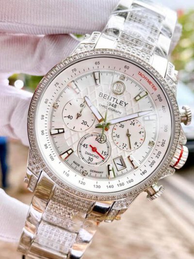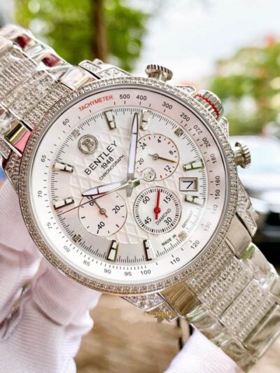 - ĐỒNG HỒ BENTLEY BL1794-602WWI-S vẻ đẹp sang trọng, đẳng cấp.Case silver đính 233 pcs white sapphire. Cọc số hiện đại với 4 pcs diamond đính nổi trên mặt Dial trắng siêu mê, thiết kế các ô quay số trắng nổi bật và đậm chất thể thao. Dây thép không gỉ đính 154 pcs white sapphire lịch sự và sang trọng cho phép chủ nhân tha hồ diện đồ công sở.
