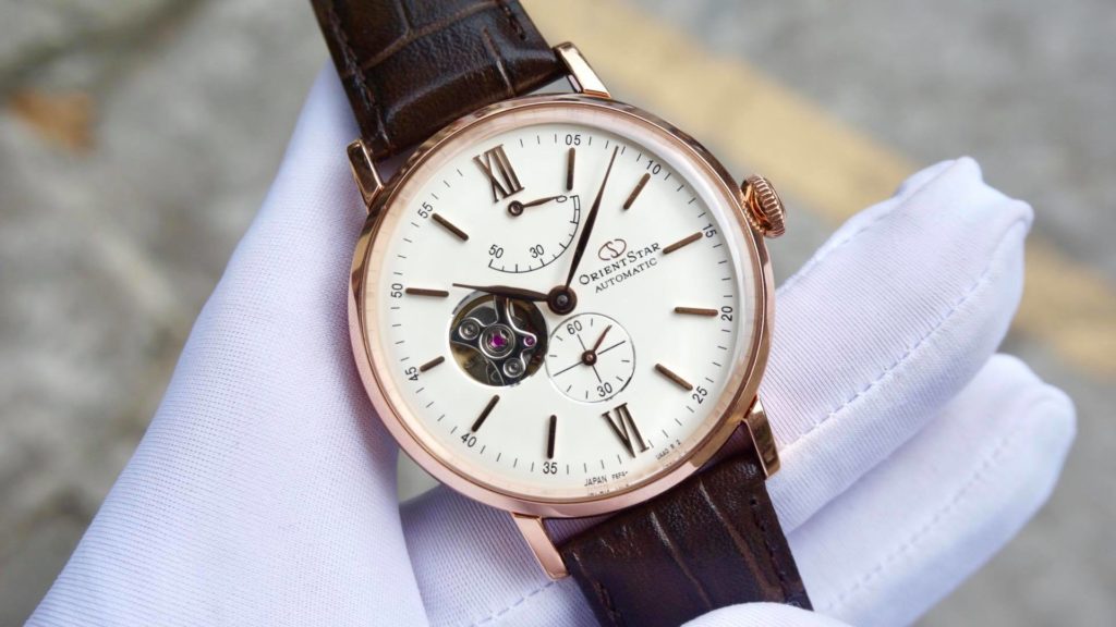 Mẫu Orient RE-AV0001S00B phiên bản Skeketon nổi bật với ô chân kính lộ tim phô diễn ra 1 phần hoạt động bộ máy cơ bên trong tạo nên vẻ độc đáo sang trọng với phần vỏ máy kim loại mạ vàng hồng.