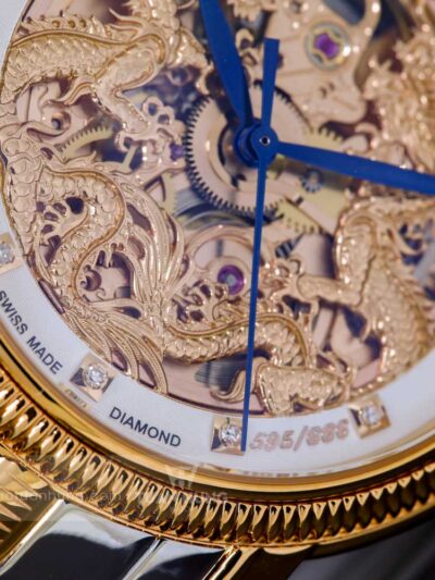 Đồng hồ Ogival OG358.652AGSR-T ( Ogival song long chầu nguyệt ) là đồng hồ thương hiệu Thụy Sĩ. Ogival song long chầu nguyệt với biểu tượng hai linh vật rồng thiêng liêng mà theo truyền thuyết thời xa xưa không chỉ biểu tượng cho sức mạnh thần thánh mà còn ẩn trong đó những giá trị nhân văn, phản chiếu trí tuệ, ước vọng của con người và nền văn minh.