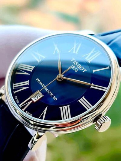 - – TISSOT T122.407.16.043.00 vẻ đẹp sang trọng. Mặt xanh dương, Cọc số la mã cổ điển kết hợp ô lịch ngày góc 6h rất tiện lợi. Dây da cực sang cho phép chủ nhân tha hồ diện đồ công sở.