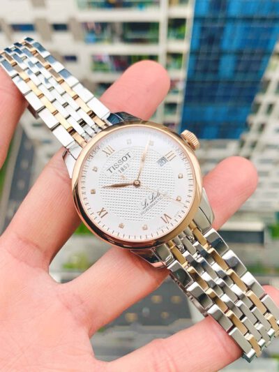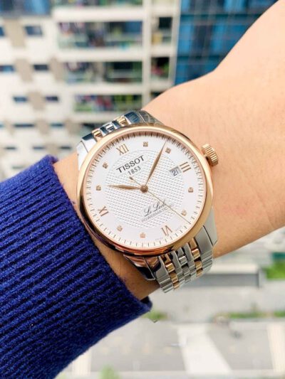 - – TISSOT LE LOCLE AUTOMATIC T006.407.22.036.00 vẻ đẹp sang trọng. Cọc số hiện đại đính 8 viên kim cương. Dây kim loại sang cho phép chủ nhân tha hồ diện đồ công sở.
