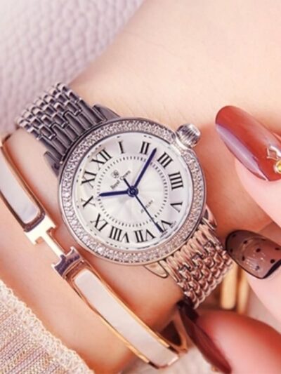 1. Đá đính trên vỏ và dây đồng hồ là đá CZ- Zirconia với độ cứng từ 8- 8,5 (Chất lượng rất tốt nếu so với Ruby: 9 và Kim cương: 10).