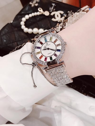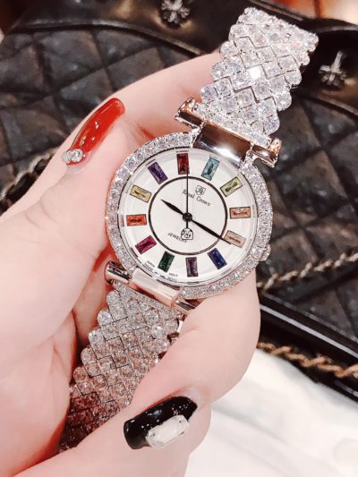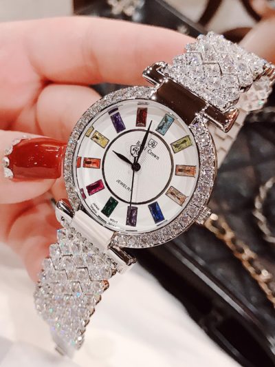 1. Đá đính trên vỏ và dây đồng hồ là đá CZ- Zirconia với độ cứng từ 8- 8,5 (Chất lượng rất tốt nếu so với Ruby: 9 và Kim cương: 10).