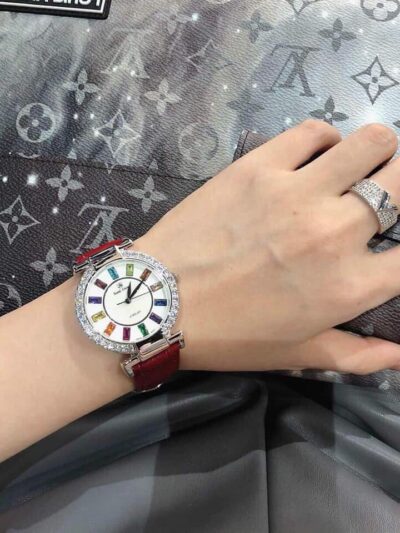 1. Đá đính trên vỏ và dây đồng hồ là đá CZ- Zirconia với độ cứng từ 8- 8,5 (Chất lượng rất tốt nếu so với Ruby: 9 và Kim cương: 10).