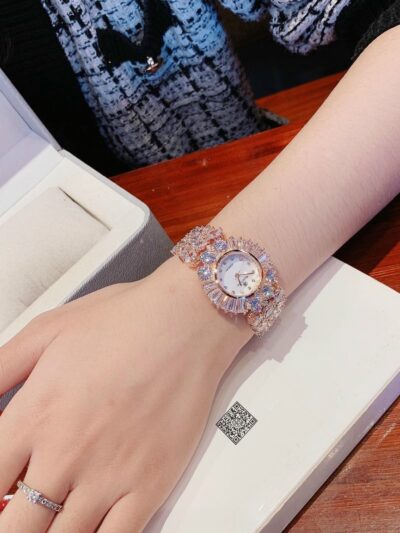 1. Đá đính trên vỏ và dây đồng hồ là đá CZ- Zirconia với độ cứng từ 8- 8,5 (Chất lượng rất tốt nếu so với Ruby: 9 và Kim cương: 10).
