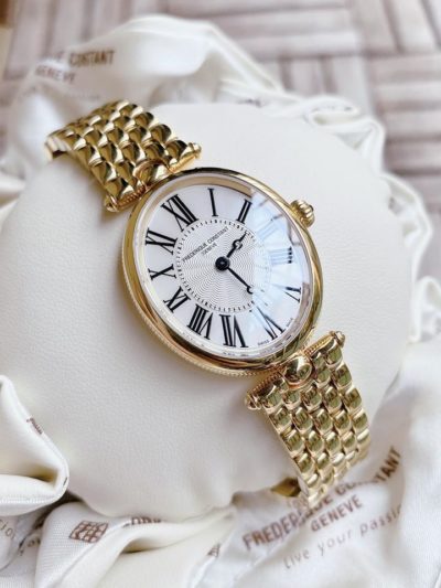 Đồng hồ Frederique Constant FC-200MPW2V5B là chiếc đồng hồ Quartz với bộ dây kim loại 5 mắt được mạ vàng-vàng – một chiếc đồng hồ đến từ Thụy Sỹ. Với bố cục mặt họa tiết Guilloche, các chi tiết thon gọn, FC-200MPW2V5B sở hữu thiết kế giản đơn, cổ điển. Kích cỡ mặt số 30mm x 25mm. FC-200MPW2V5B rất dễ đeo, một kích thước vừa phải với cổ tay nữ giới.