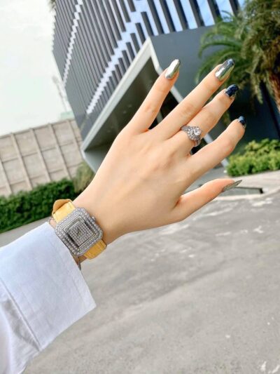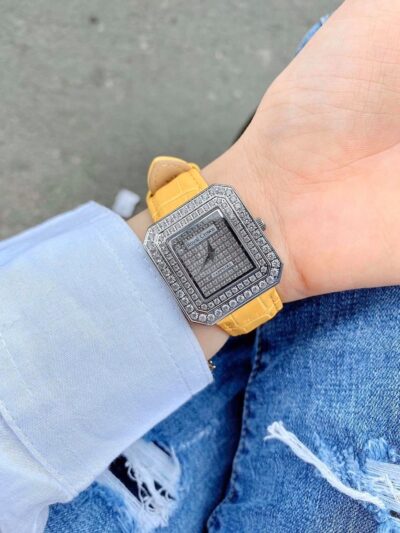 1. Đá đính trên vỏ và dây đồng hồ là đá CZ- Zirconia với độ cứng từ 8- 8,5 (Chất lượng rất tốt nếu so với Ruby: 9 và Kim cương: 10).
