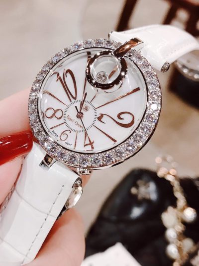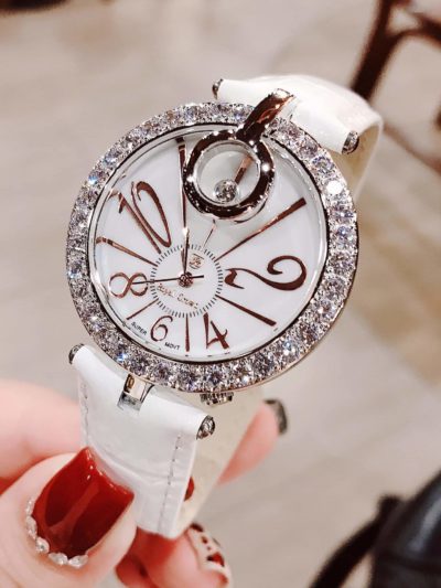 1. Đá đính trên vỏ và dây đồng hồ là đá CZ- Zirconia với độ cứng từ 8- 8,5 (Chất lượng rất tốt nếu so với Ruby: 9 và Kim cương: 10).