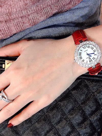 1. Đá đính trên vỏ và dây đồng hồ là đá CZ- Zirconia với độ cứng từ 8- 8,5 (Chất lượng rất tốt nếu so với Ruby: 9 và Kim cương: 10).