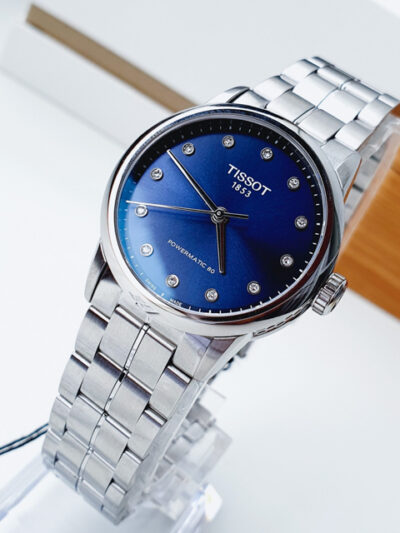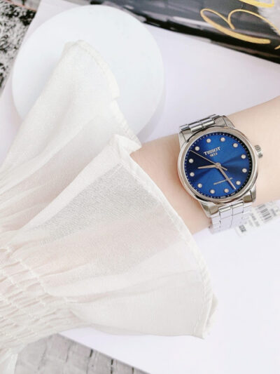 - – TTISSOT T086.207.11.046.00 vẻ đẹp sang trọng. Thiết kế dây thép không gỉ sáng bóng, mặt số xanh dương cuốn hút. Nổi bật hơn là đính 12 viên kim cương.