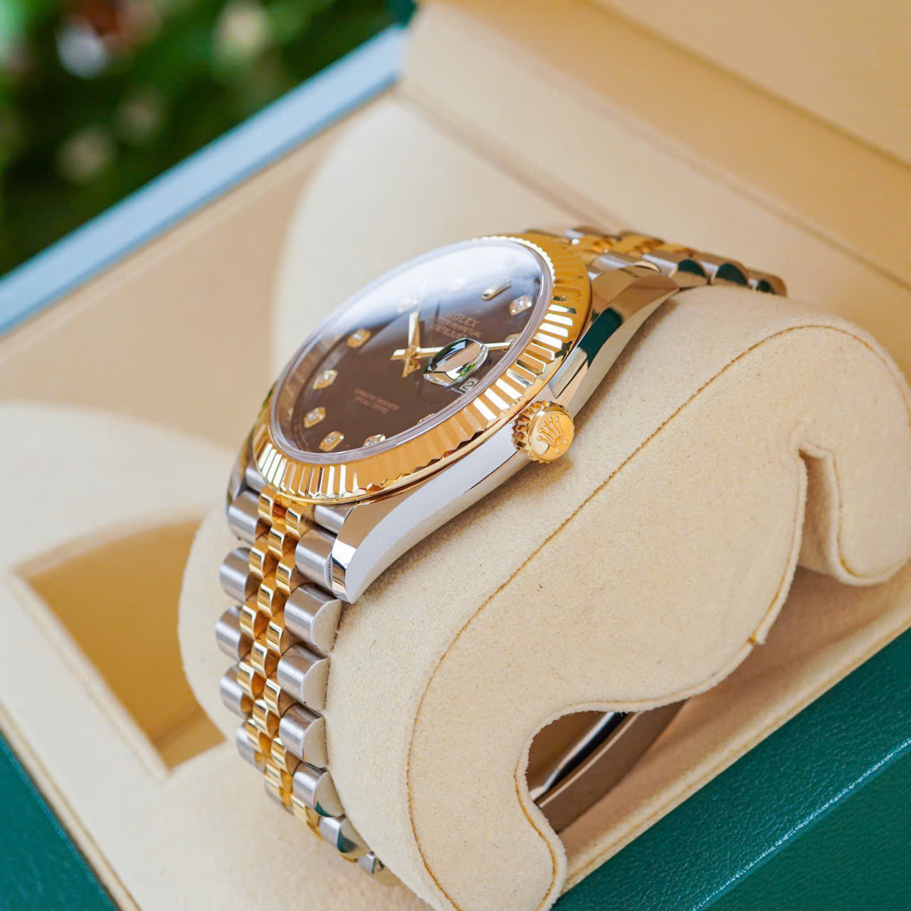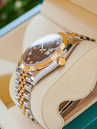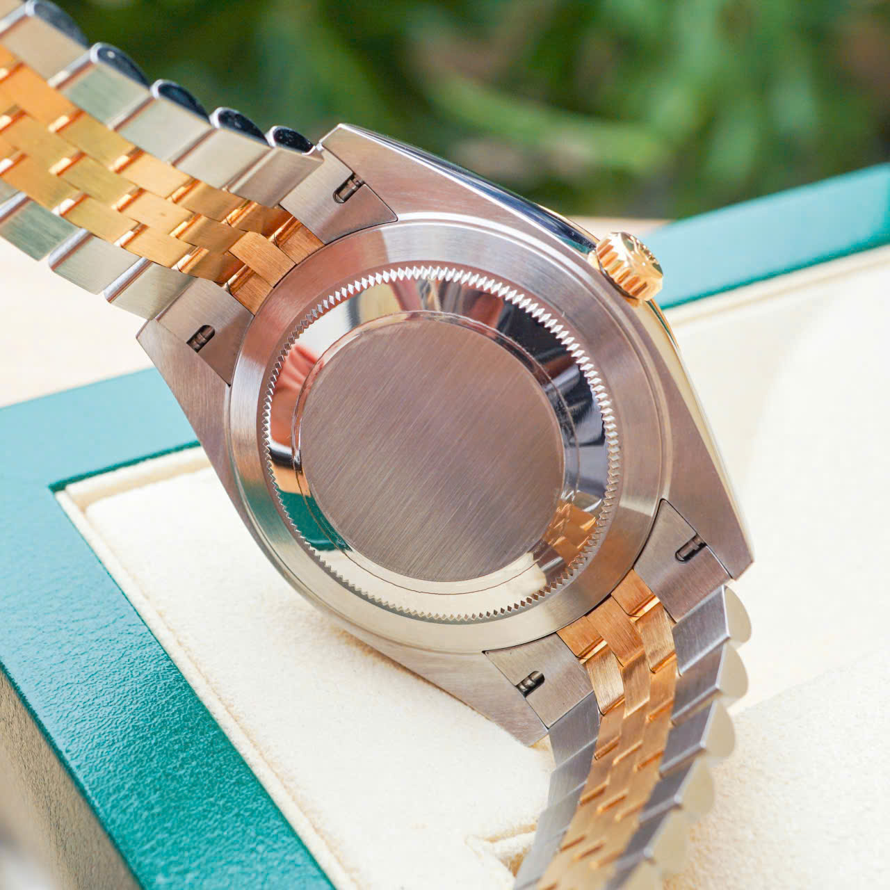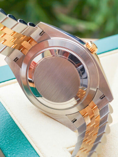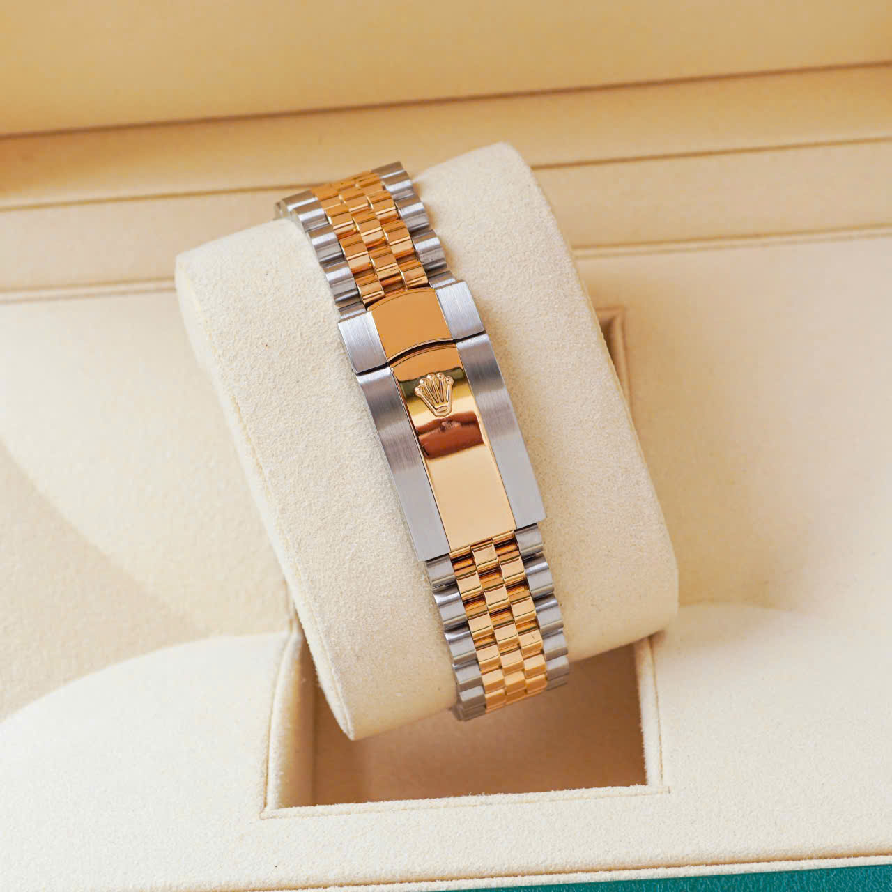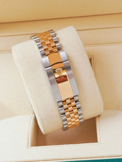 Và với mọi bộ phận của đồng hồ, tính thẩm mỹ được đảm bảo dưới con mắt chuyên gia. Dây đeo đồng hồ kim loại Jubilee có thiết kế mềm mại và thoải mái với mối nối năm mảnh và được đặc biệt chế tác cho sự ra mắt của Oyster Perpetual Datejust vào năm 1945.