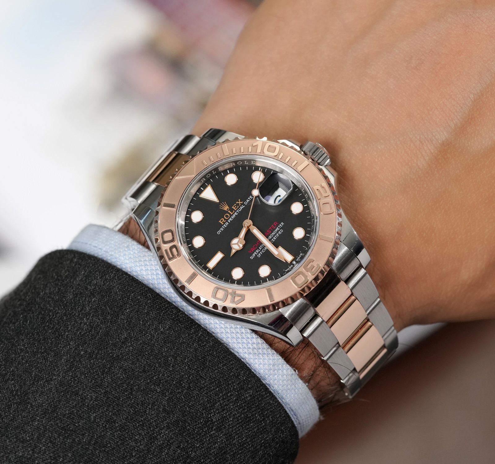 Tuy là một mẫu đồng hồ thể thao, nhưng Rolex Yacht Master 126621 vẫn mang nhiều dáng vẻ của một chiếc Dress Watch. Kích thước đường kính vừa phải, đi kèm chất liệu vàng hồng quý phái đã làm cho mẫu đồng hồ này có sự cân bằng hoàn hảo.