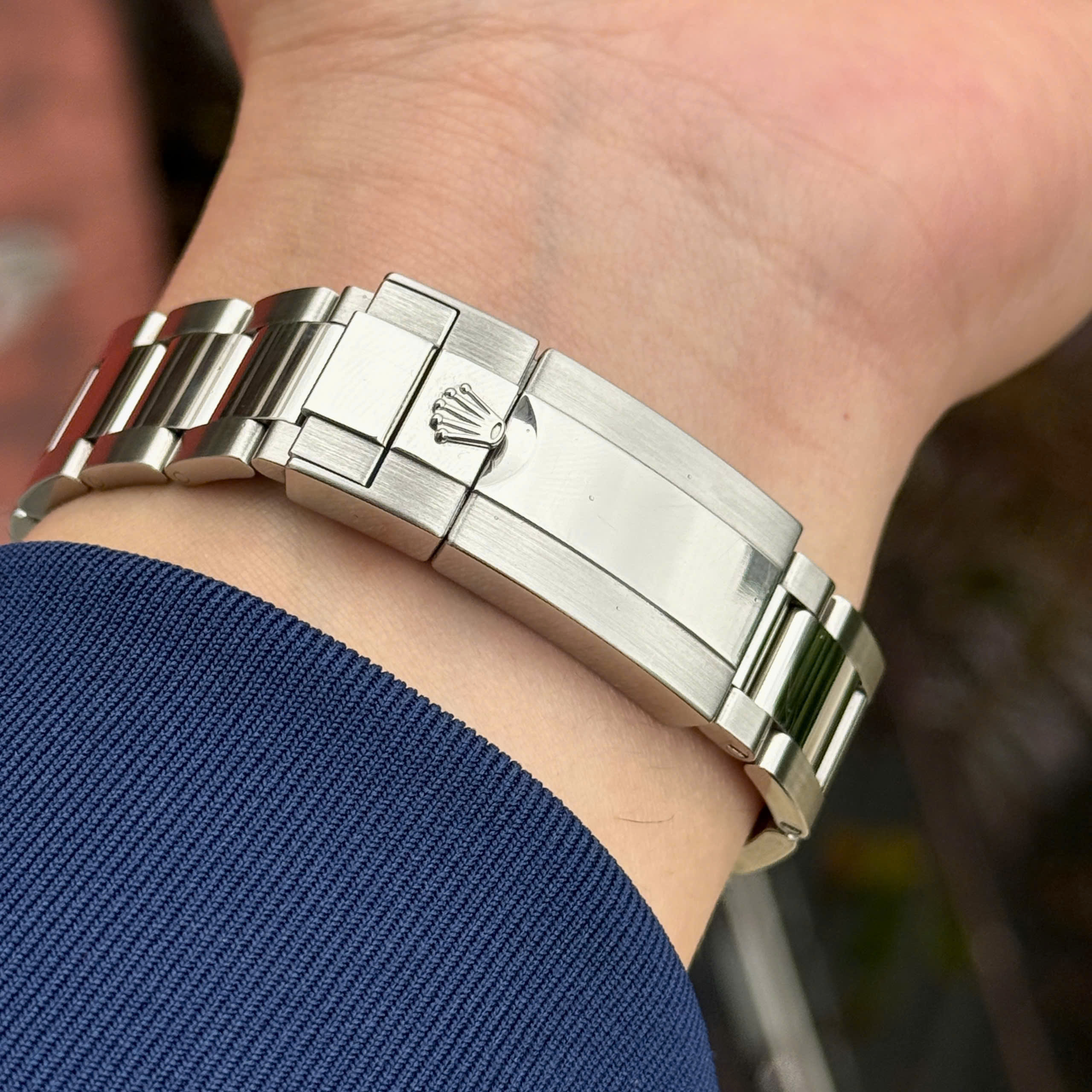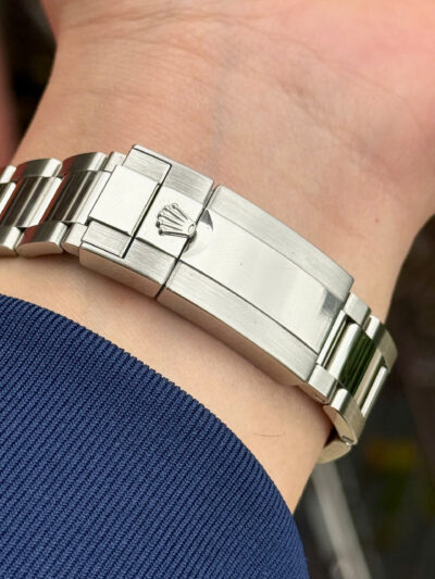 Trên mặt số đồng hồ, mọi người sẽ nhìn thấy dòng chữ Superlative Chronometer. Đây chính là tiêu chuẩn chất lượng độc quyền của Rolex, với sai số được đảm bảo dưới 2 giây mỗi ngày. Ở góc 6 giờ, dòng chữ Swiss Made có thêm biểu tượng vương miện ở giữa, báo hiệu rằng bên trong chiếc đồng hồ là bộ máy thế hệ mới.