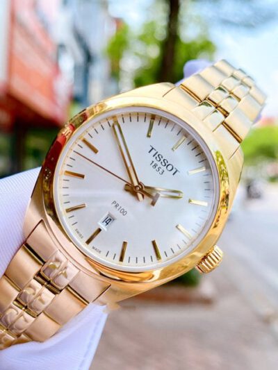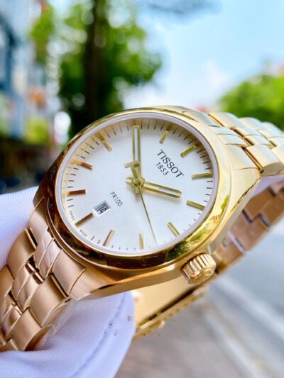 - TISSOT PR 100 GENT NBA T101.210.33.031.00 vẻ đẹp sang trọng, quý phái. Cọc số hiên đại kết hợp ô lịch ngày góc 6h rất tịnh lợi. Dây Kim loại mạ PVD màu vàng lịch sự và sang trọng cho phép chủ nhân tha hồ diện đồ công sở.