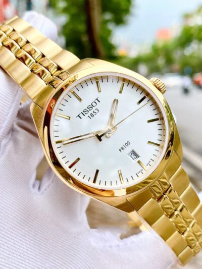 - TISSOT PR 100 GENT NBA T101.410.33.031.00 vẻ đẹp sang trọng, quý phái. Cọc số hiên đại kết hợp ô lịch ngày góc 6h rất tịnh lợi. Dây Kim loại mạ PVD màu vàng lịch sự và sang trọng cho phép chủ nhân tha hồ diện đồ công sở.
