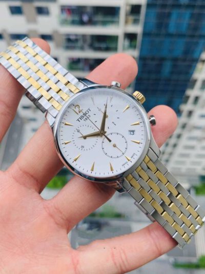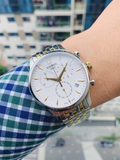 - TISSOT TRADITION T063.617.22.037.00 vẻ đẹp sang trọng. Cọc số đính hiện đại. Dây kim loại cực sang cho phép chủ nhân tha hồ diện đồ công sở.