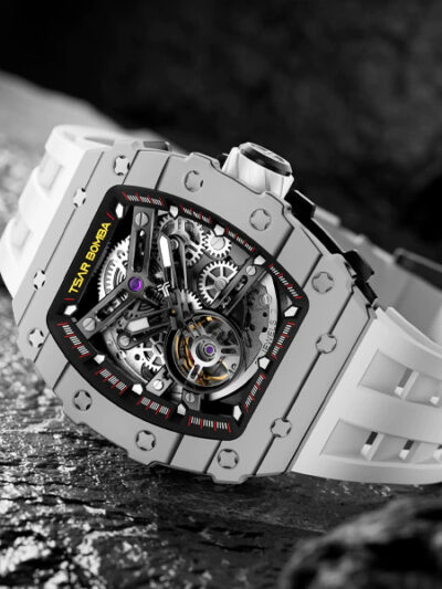 Đặc biệt thân vỏ được làm từ Carbon Fiber siêu nhẹ với màu đen nam tính, kết hợp cùng bộ máy skeleton cực kỳ bắt mắt