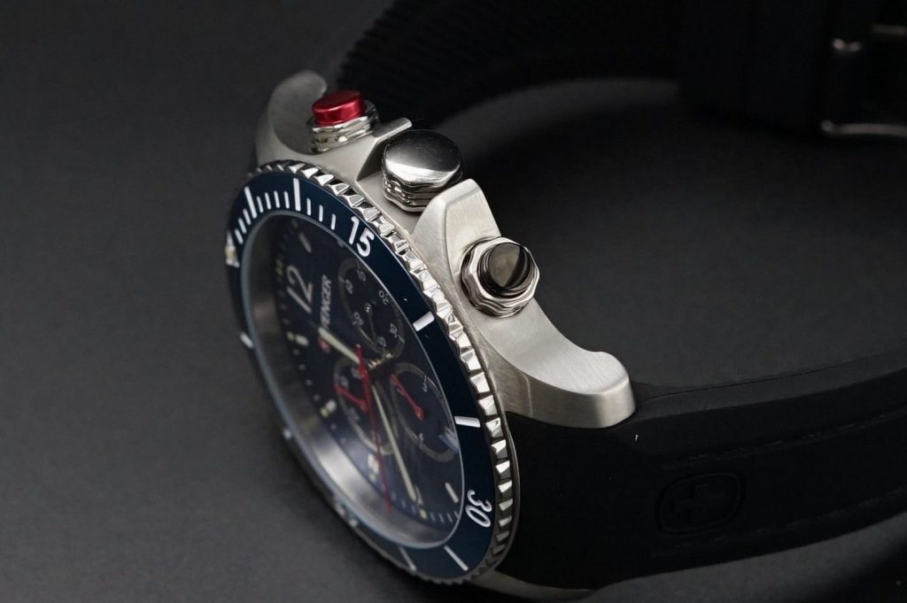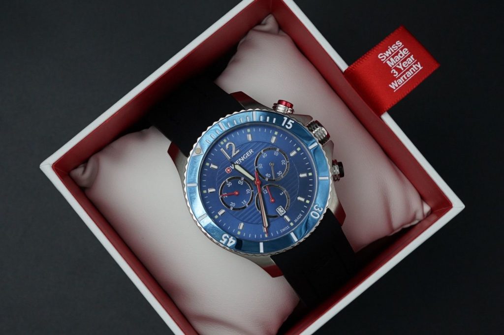 Chiếc đồng hồ là sản phẩm trí tuệ của đội ngũ nhưng người làm đồng hồ xuất sắc nhất của Wenger. Bền mặt của sản phẩm được bao phủ bởi lớp mạ PVD màu xanh dương ma mị. Tuy nhiên, với sự tài tình khéo léo chiếc Wenger đã được trang trí thêm những đường nét sáng khiến cho mẫu đồng hồ tưởng như thô kệch này lại được toát lên vẻ lịch lãm, sang trọng.