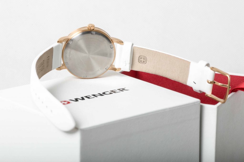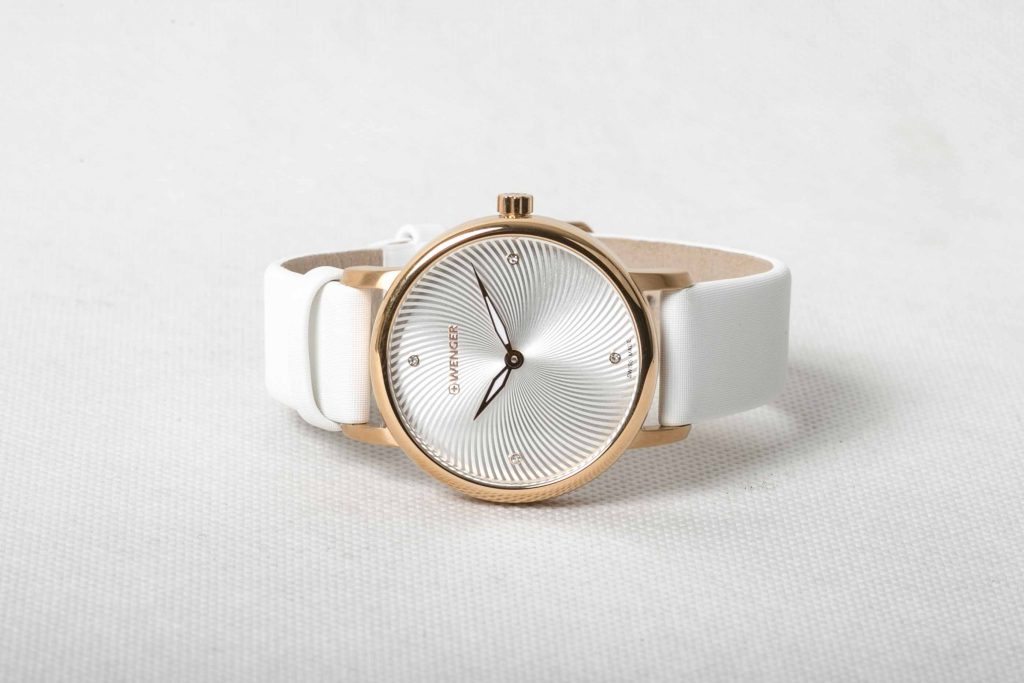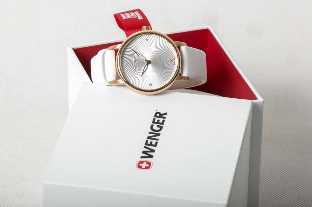 Tiếp cận với phần mặt số ta cũng sẽ thấy bao trọn mặt số là màu trắng những đường vân hình rẻ quạt lấy trọng tâm là trục kim giây và kim phút. Tại 4 vị trí giờ qua trọng 3,6,9,12 đều được đính đá làm điểm nhấn. Về bảo vệ bộ máy cũng rất tin cậy với khả năng chống nước 100m không những thế tất cả đồng hồ của Wenger đều được ưu ái với chế độ bảo hành trong 3 năm do lỗi nhà sản xuất.
