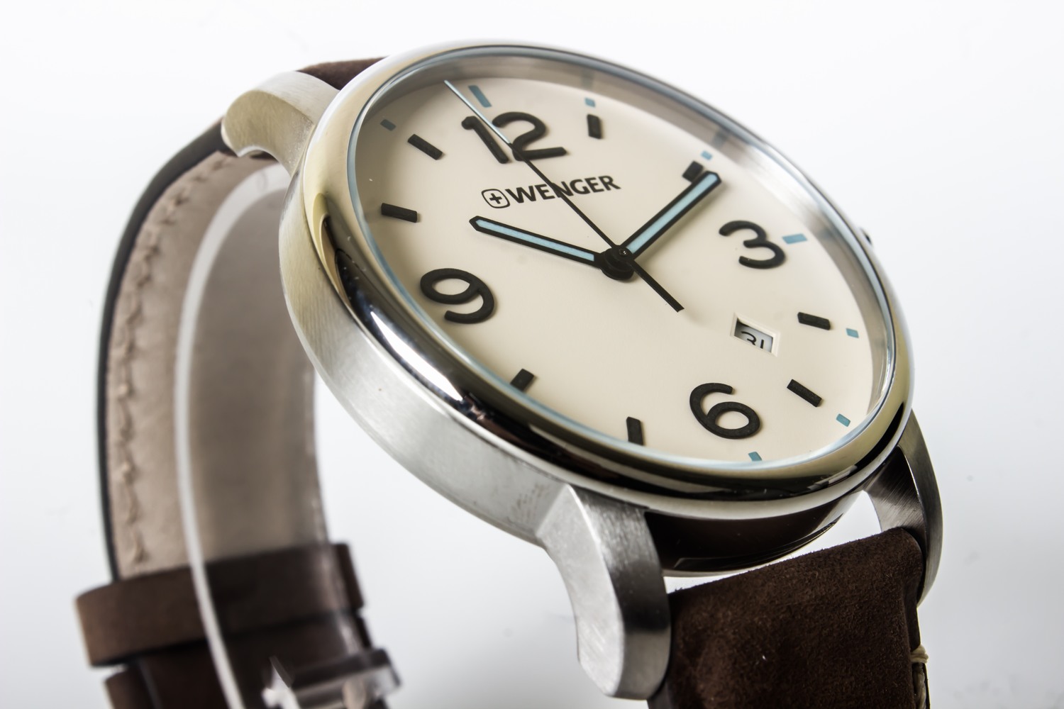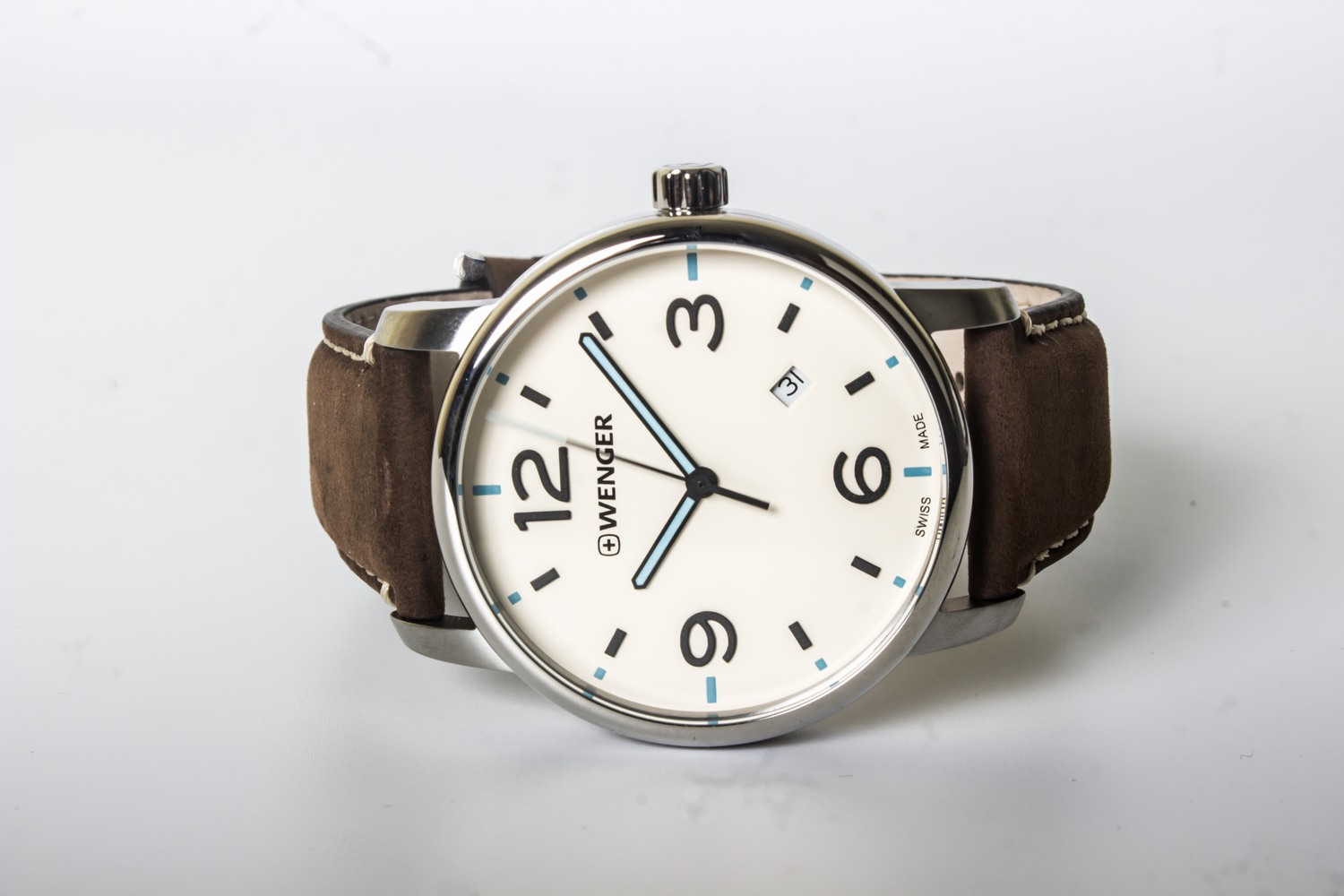 Wenger 01.1741.118 vẫn mang những nét đặc trưng – vẻ đẹp của sự giản đơn, tinh tế của dòng Urban. Thiết kế đồng hồ có 3 kim chỉ giờ, chỉ phút và phút được “khoác” lên mình màu xanh nauy nổi bật. Các số chỉ giờ 3h, 6h, 9h và 12h thiết kế size to nổi bật, ô lịch ngày đặt ở vị trí chính giữa 4h và 5h. Chính yếu tối tối giản và sự sáng tạo trong thiết kế đã góp phần giúp mặt đồng hồ thoáng đãng, đơn giản khiến việc xem giờ trở nên dễ dàng!