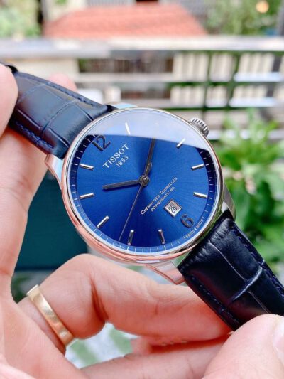 - – TISSOT T099.407.16.047.00 vẻ đẹp sang trọng. Cọc số hiện đại. Dây da màu xanh cực sang cho phép chủ nhân tha hồ diện đồ công sở.