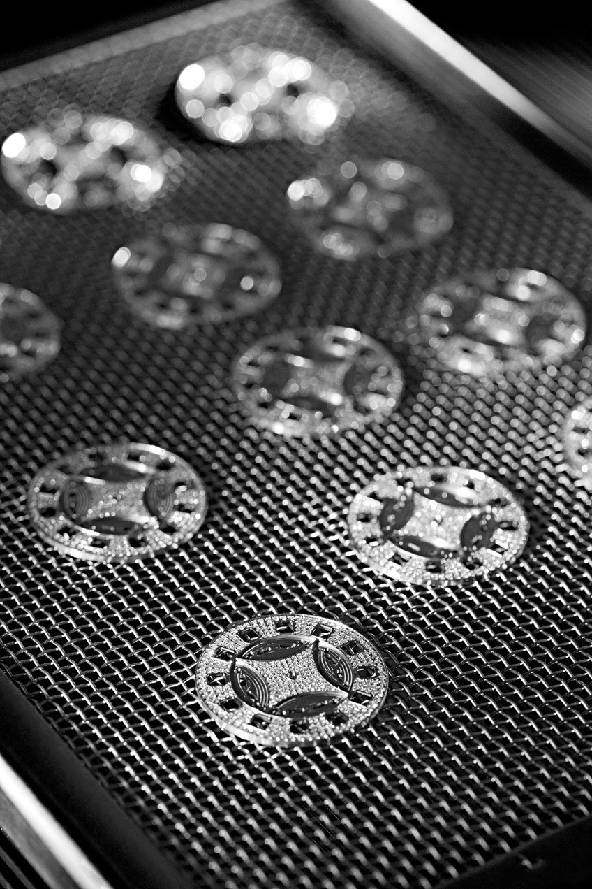 Ngoài ra còn có rất nhiều minh chứng cho tài năng của các thợ đồng hồ ở Geneva, cùng sự phối hợp hoàn hảo với những thợ kim hoàn nổi tiếng của Louis Vuitton, đến từ Place Vendôme ở Paris. Chẳng hạn như chiếc đồng hồ Dentelle de Monogram, sở hữu mặt số xà cừ được thiết kế skeleton, mô phỏng hoạ tiết monogram danh tiếng của Louis Vuitton và lấy cảm hứng từ bộ sưu tập trang sức cao cấp “Voyage dans le Temps”. Kết cấu của các đĩa xà cừ tối ưu nhất có thể để chế tác mặt số có độ dày tốt nhất trước khi chạm khắc họa tiết.